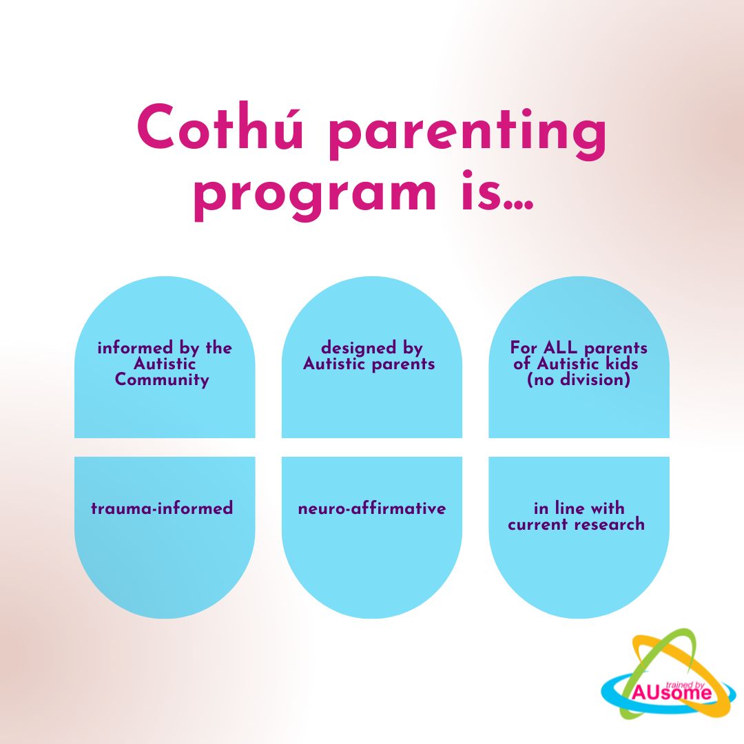 Cothú (pronounced ka-hoo, meaning “nurture”) was created by AUsome Training and developed by autistic professionals. As licensed facilitators, we deliver this programme with care, integrity, and a deep commitment to neuro-affirming practice.